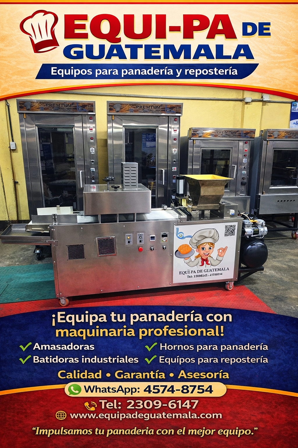 hornos a gas, hornos de convección, amasadoras y refinadoras, cilindros refinadores, batidoras, artesas, clavijeros, bandejas, estufas industriales, carretas de pollo, carretas para tacos, carretas para shukos y mucho más.